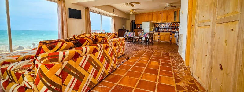 Personalized attention and guidance according to your needs. Direct access to the sand and the sea, spacious living room, dining area, fully equipped kitchen, one bedroom with a full-size bed, full-size sofa bed, air conditioning, spacious bathroom, television, and Wi-Fi.